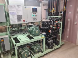 - Utilises all waste heat from the refrigeration system and supplements with a false load to top up in winter