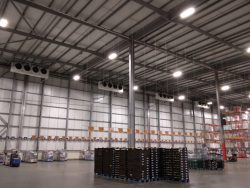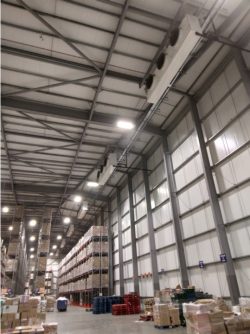 Based on the clients requirements, the Kelvion evaporators have a 5K TD between room and evaporating temperature. Under careful consideration, electric defrost was selected. The evaporator defrost time and duration is carefully designed and controlled based on the evaporator locations to reduce the energy usage for defrost and improve the temperature distribution inside the coldrooms. The evaporators are able to achieve the required air throw without the air straighteners or diffusers.
