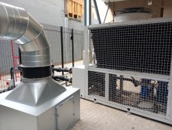 The required calculated duty was 60kW so we installed a system with a cooling capacity of 62kW spread across the 12no coolers.