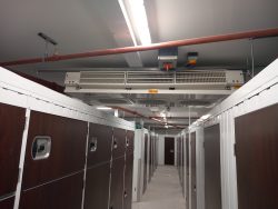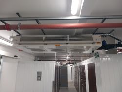 As part of a larger storage facility, the designated level needed to be equipped with an energy efficient, future proof system, holding the room at +12°C. We selected an external glycol chiller and 12 internally positioned duel discharge coolers running from a control system with a common control panel.