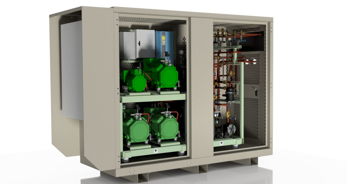 The ECO₂ Mini is a natural refrigeration system using R744/CO₂ that offers heat reclaim potential. This booster HT or dual temperature unit is ideal for applications with smaller cooling requirements from 30kW to 60kw HT.